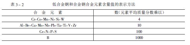 低合金鋼和合金鋼牌號中合金元素值的表示方法見表3-2。